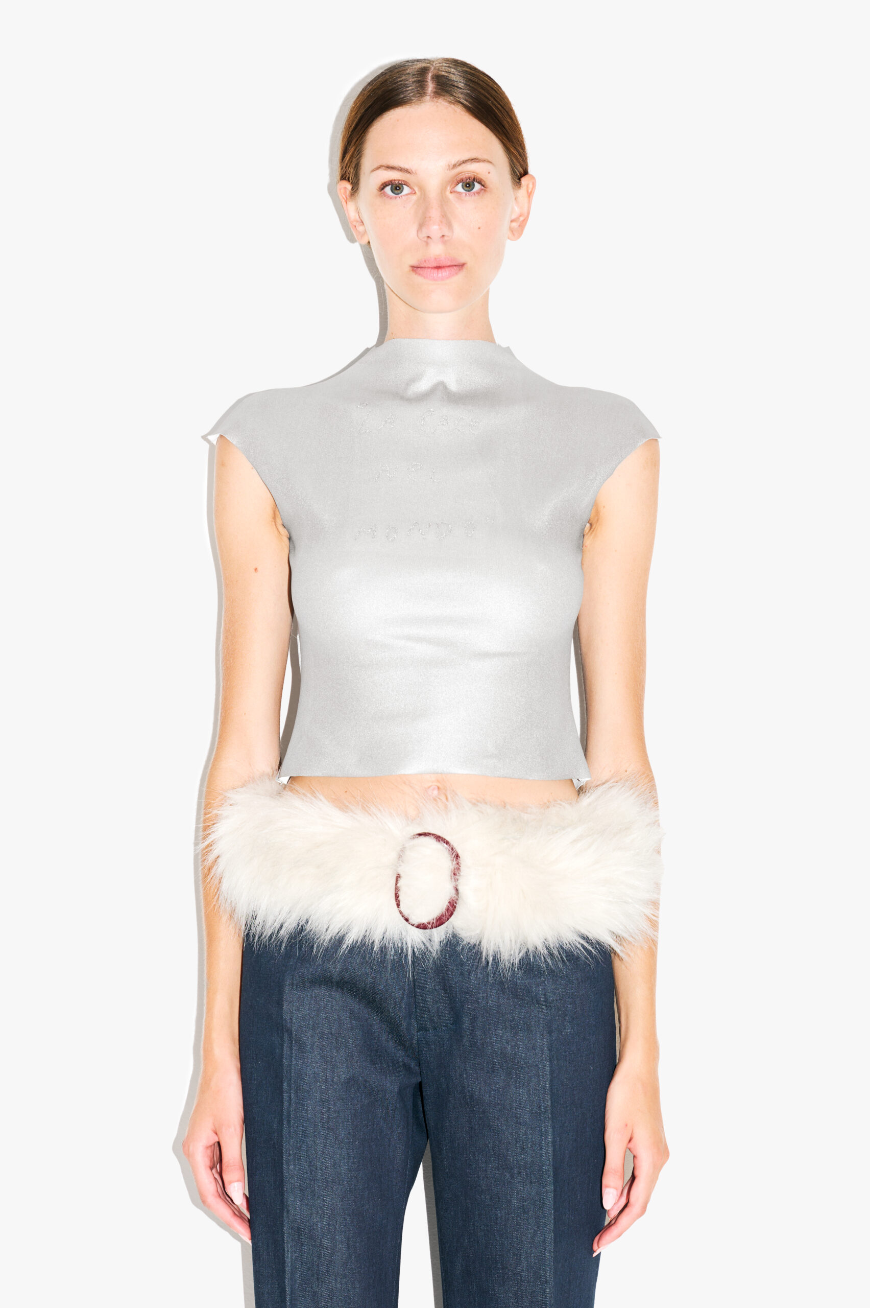 Enhance your figure with this faux fur belt made of a unique blend of dark and light shades. This design is inspired by Valentina by Guido Crepax’s Valentina.
