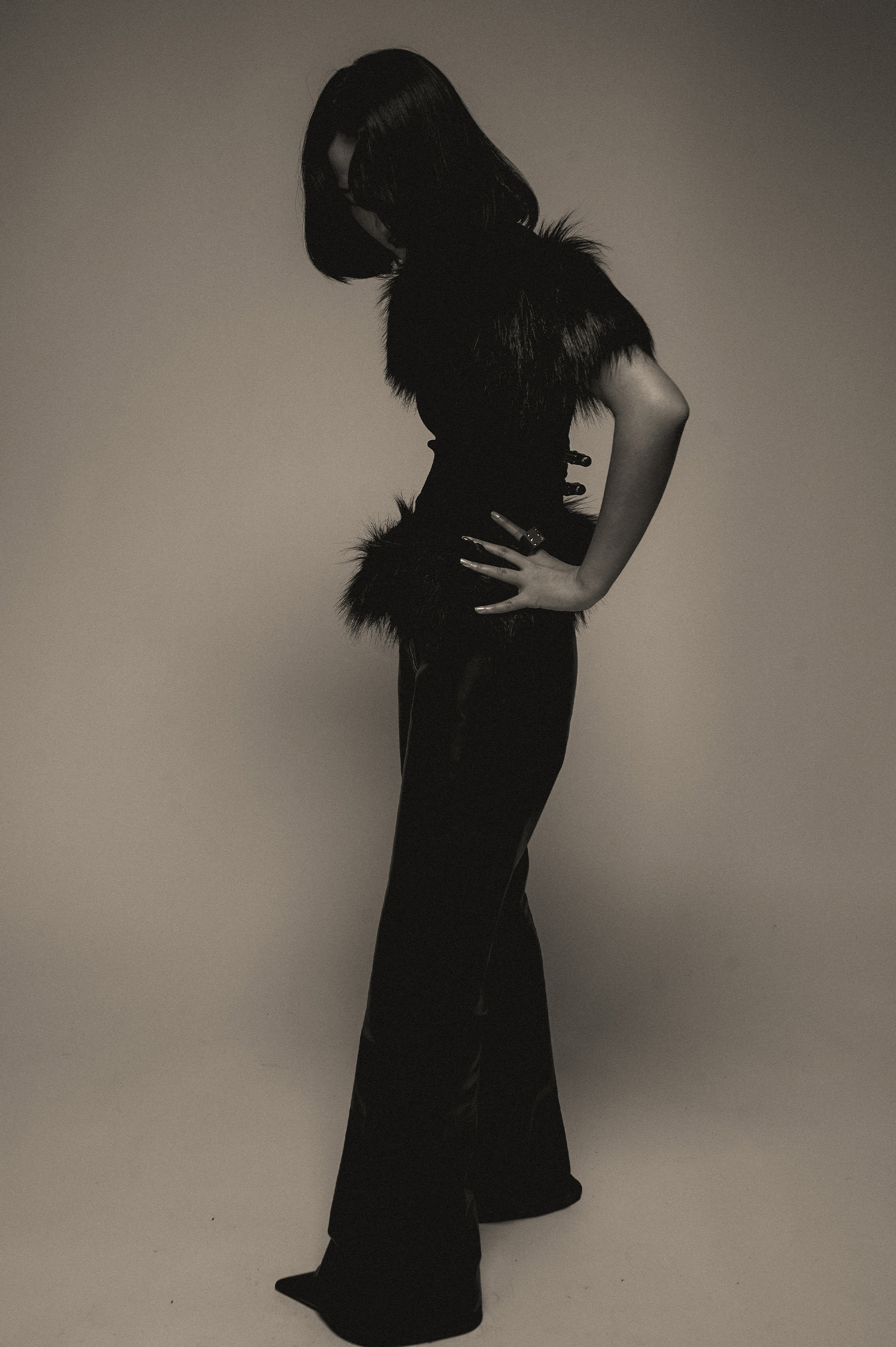 “Woman As Animal” Faux Fur Wings Top (Notte)